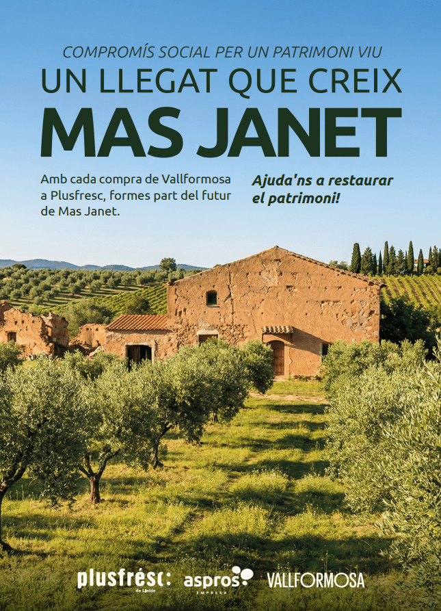 La Fundació Aspros, Vallformosa i Plusfresc hem posat en marxa una nova campanya solidària amb l’objectiu de contribuir a la restauració de Mas Janet, la finca vinculada al mestre guitarrista Emili Pujol, situada a Torrebesses.
