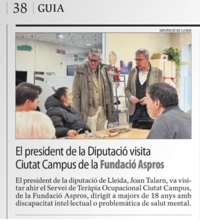 - Suport de la Diputació de Lleida al Servei de Teràpia Ocupacional d’Aspros (La Mañana Print, 14/02/2026)